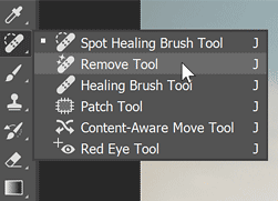 ابتدا از نوار ابزار سمت چپ، Remove Tool را انتخاب کنید(مطابق این تصویر)