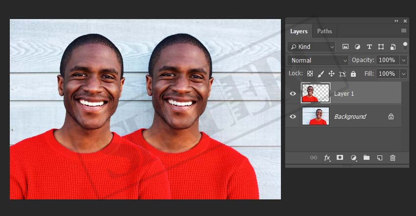 بعد از اینکه انتخاب سوژه به اتمام رسید، میتوانید با روشهای قبلی آن را به یک لایۀ جدید تبدیل کرده و یا از شورتکی جایگزین Ctrl+J استفاده کنید تا در یک مرحله آن را تبدیل به یک لایۀ جدید کنید.