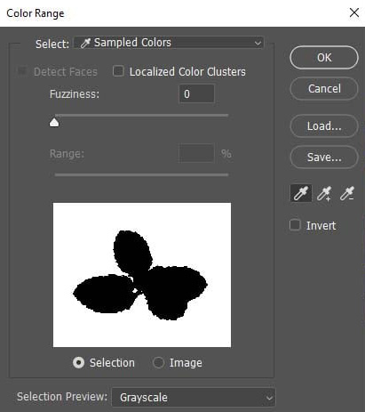 اگر سوژۀ شما(یا پسزمینه) طیف رنگی مشخصی دارد، میتوانید از این روش نیز استفاده کنید. از منوی اصلی(منوی بالا) تب Select را باز کنید و روی گزینۀ Color Range کلیک کنید. حالا قطرهچکان را بردارید و روی قسمتی که رنگ واحدی دارد(در اینجا پسزمینه که سفید است) کلیک کنید تا آن قسمت انتخاب شود. با تنظیم Fuzziness میتوانید دقت انتخاب را بالاتر ببرید.