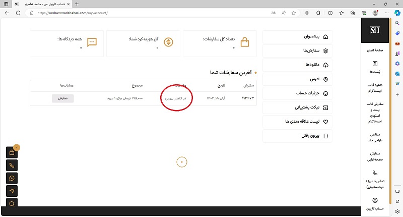 در اینجا میتوانید سفارشهای قبلی خود را ببینید و درصورت نیاز، ازطریق ارسال تیکت با من در ارتباط باشید.
