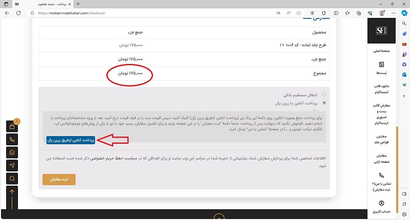 روی دکمۀ پرداخت آنلاین ازطریق زرین پال کلیک میکنیم.
