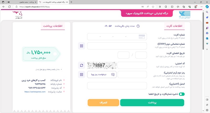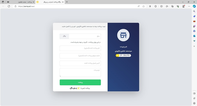 اگر گزینۀ پرداخت آنلاین ازطریق زرین پال را انتخاب کردید، این مراحل را در ادامه طی میکنید: