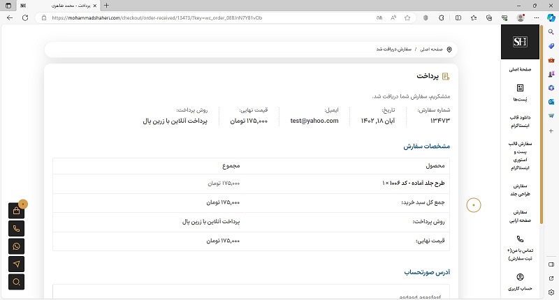 پس از پرداخت، از صفحۀ رسید نهایی عکس گرفته و مجدداً به تب مربوط به سبد خرید برمیگردیم و حتماً برای ثبت نهایی سفارش، روی دکمۀ ثبت سفارش کلیک میکنیم.