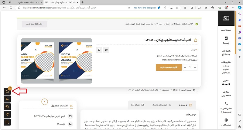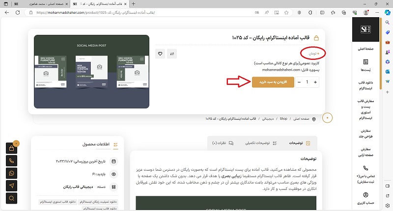بعد از ورود به اکانت؛ در بین محصولات این سایت، بسیاری رایگان هستند و قیمت آنها نیز 0 تومان درج شده است. هرکدام که مد نظر است را با کلیک روی دکمۀ افزودن به سبد خرید، انتخاب می‌کنیم.