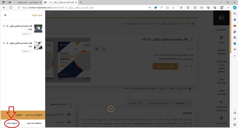 بعد از انتخاب محصولات مورد نظر، روی دکمۀ سبد خرید کلیک می‌کنیم(تصویر زیر).