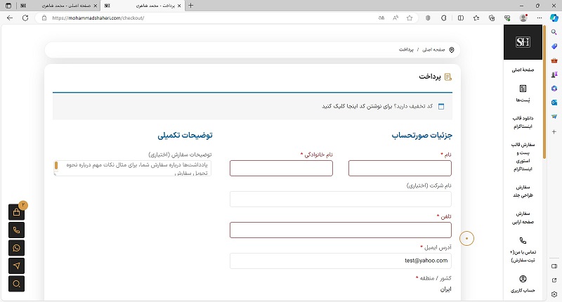 اگر قبلاً مشخصاتمان را وارد نکرده باشیم، در این مرحله باید فیلدهای خالی را پر کنیم؛ در غیر این صورت این فیلدها از قبل پر شده‌اند.