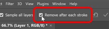1. ابتدا مطمئن شوید که تیک مربوط به Remove after each stroke در تنظیمات بالا غیرفعال است.