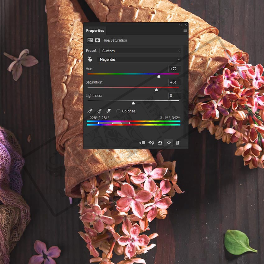 استفاده از پنجرۀ Hue/Saturation برای تغییر رنگ در فتوشاپ